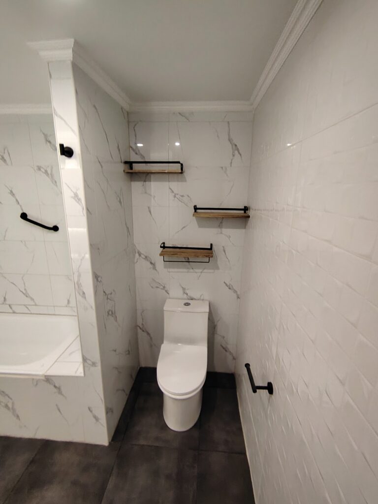 Además, se optimizó la distribución, mejorando el confort, la iluminación y la sensación de amplitud. Cada detalle fue ejecutado con precisión para entregar un baño elegante, cómodo y duradero.